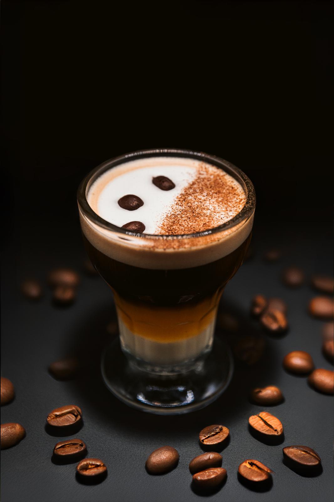 Una mezcla armoniosa de café, leche condensada, Brandy 103 y Licor 43, con un toque de canela y corteza de limón.